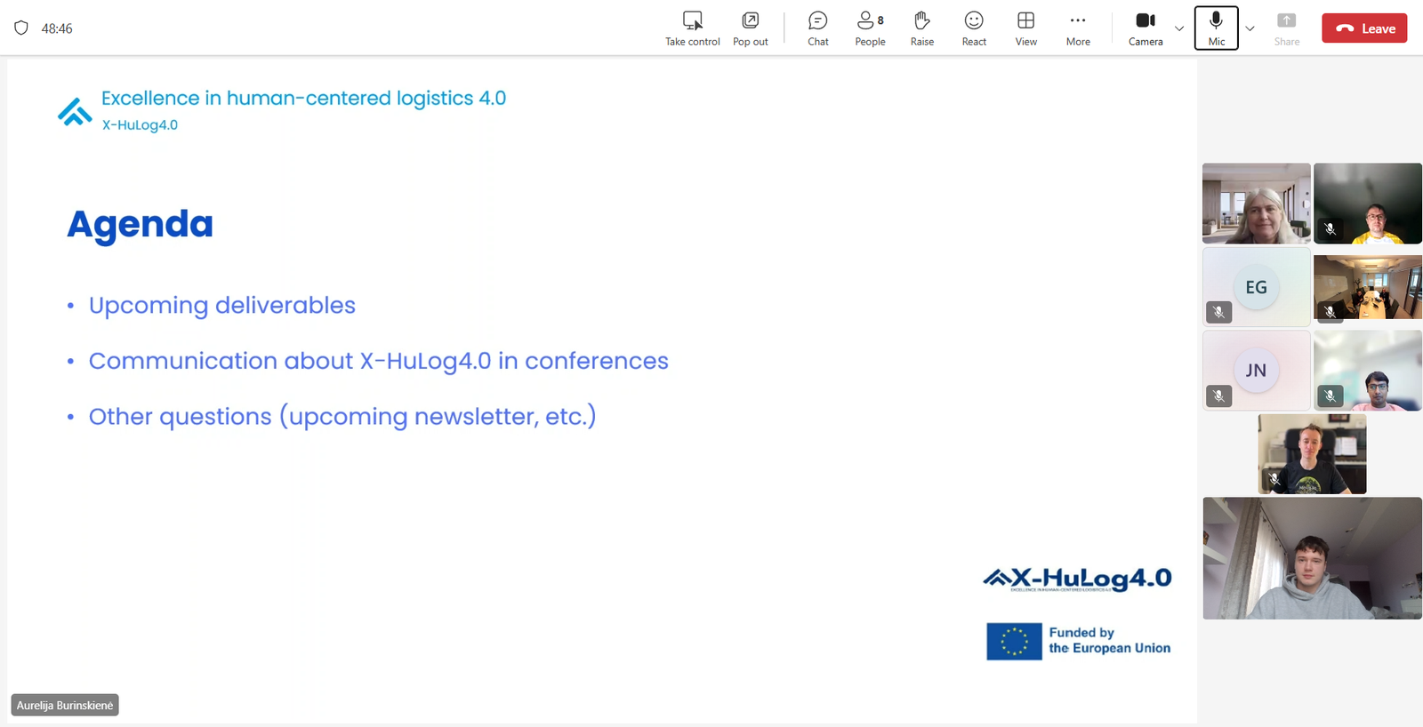 On April 28, 2025, the X-HuLog4.0 project team gathered for a productive online meeting, bringing together representatives from all project partners: VILNIUS TECH Business Management Faculty, NTNU Trondheim, TU Darmstadt, and Saarland University. The meeting was moderated by the Project Manager, Prof. Dr. Aurelija Burinskienė from VILNIUS TECH.